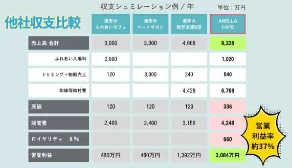 ・ANELLA:8,328万円(訓練等給付費・ふれあい入場料・トリミング+物販売上)