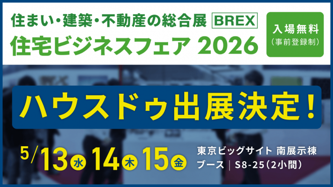 ハウスドゥは今年も「住まい・建築・不動産の総合展 BREX」に出展いたします。